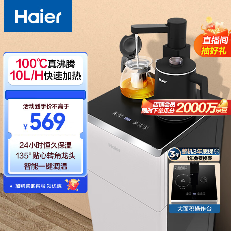 海尔(Haier)茶吧机家用 下置式饮水机 防干烧制热可调温 自动断电童锁 触屏控制饮水机家用YRQ02D-CB价格:569.00元!