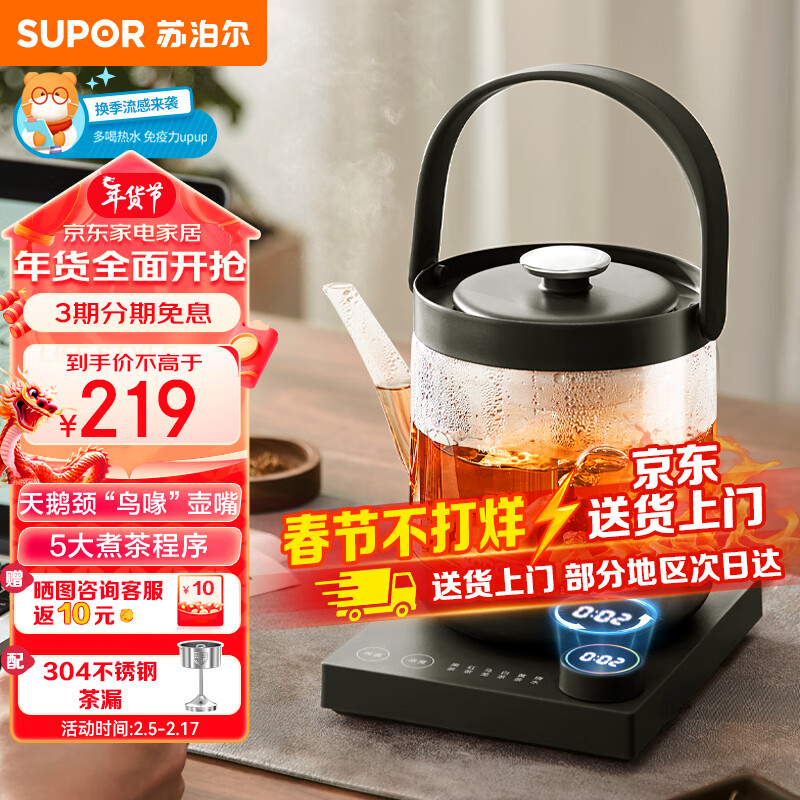 苏泊尔(SUPOR)养生壶 煮茶器大容量蒸汽喷淋式煮茶壶烧水壶 电热水壶花茶壶蒸茶器 SW-10C13【茶汤分离】价格:219.00元!