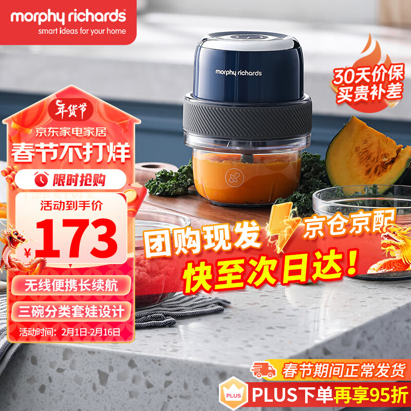 摩飞电器(Morphyrichards)绞肉机 家用套娃绞馅机无线碎肉机 电动多功能辅食料理机打蒜搅拌佐料机 三碗配置 MR9403价格:173.00元!