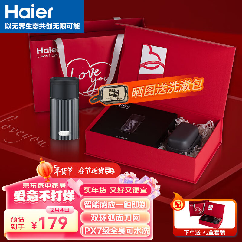 海尔(Haier)剃须刀电动智能感应 便携迷你 刮胡须刀 生日父亲节礼物送男友HD11极夜灰 臻选礼盒包装价格:179.00元!