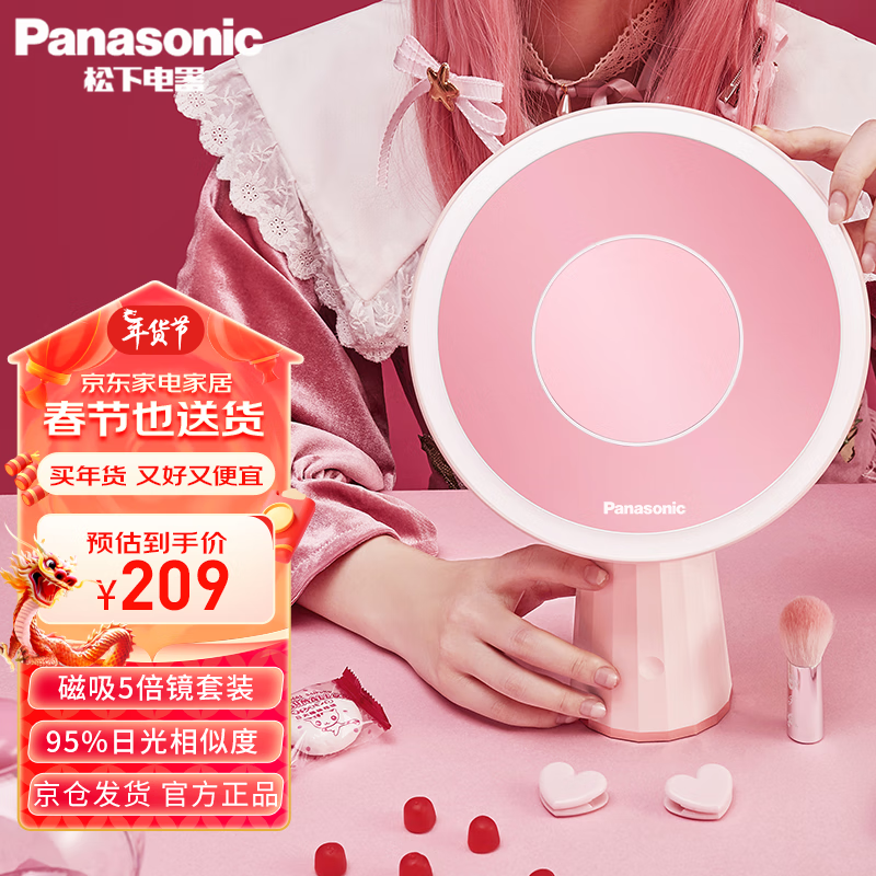 松下led化妆镜莱影系列智能镜子灯化妆镜带灯便携随身台式卫生间520礼物小镜子宿舍美妆镜加5倍放大镜价格:209.00元!