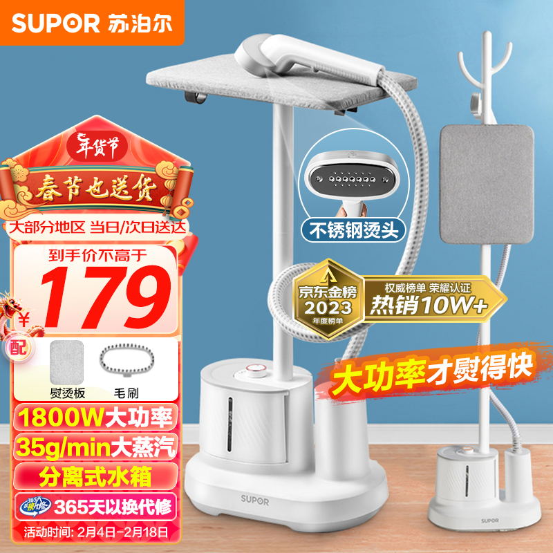 苏泊尔(SUPOR)【蝉联金榜】挂烫机家用1800w功率手持蒸汽熨烫机分离式水箱杀菌电熨斗带熨烫板GT17BP价格:200.00元!