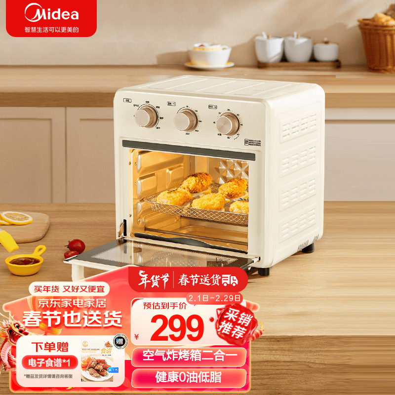 美的(Midea) 电烤箱家用多功能烤箱可视空气炸锅空气炸烤箱智能家庭小烤箱迷你小型多功能一体机 PT1511 浅杏色 15L 杏色价格:379.00元!