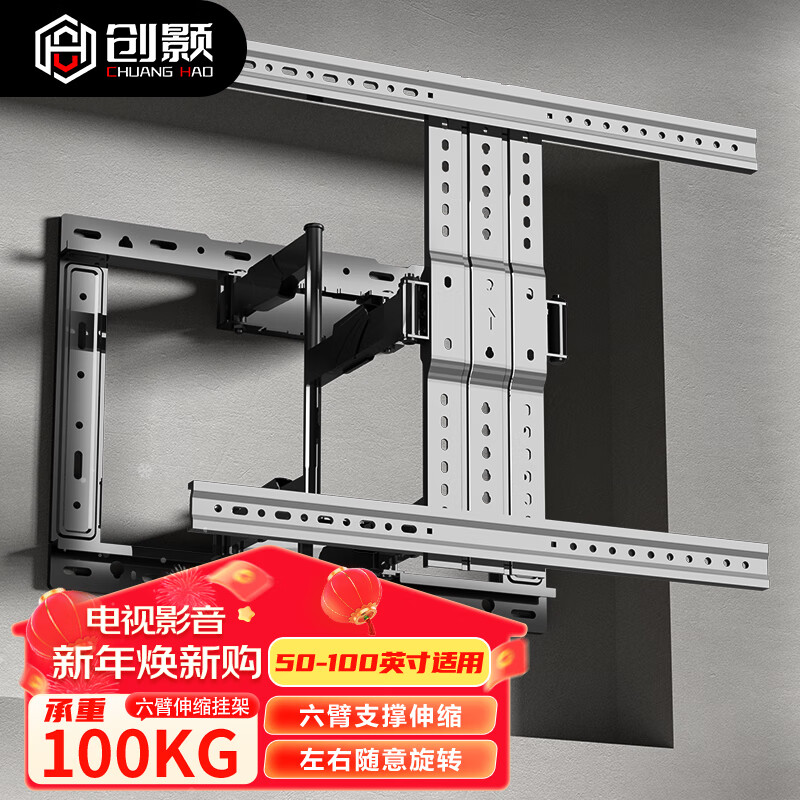 创颢超薄电视挂架(50-100英寸)电视支架伸缩旋转支架小米海信tcl折叠内嵌入式壁挂墙适用价格:399.00元!
