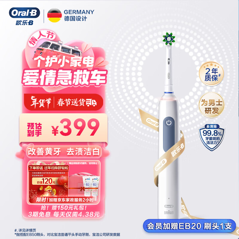 欧乐B成人电动牙刷成人Pro4Ultra男士刷3D声波圆头Pro系列深度清洁牙龈按摩生日礼物春节送礼情人节礼物价格:479.00元!