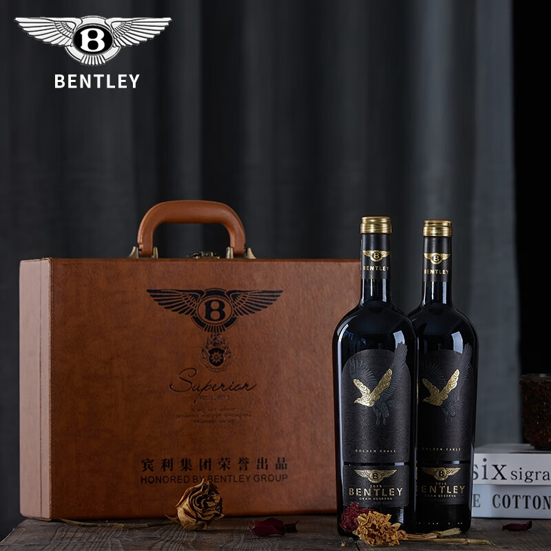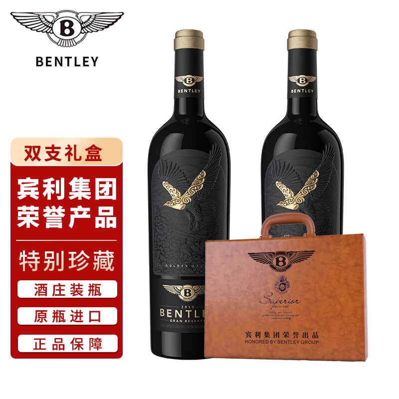 宾利(BENTLEY)智利原瓶进口红酒干红葡萄酒金鹰特别珍藏级送礼自饮红酒礼盒双支价格:458.00元!