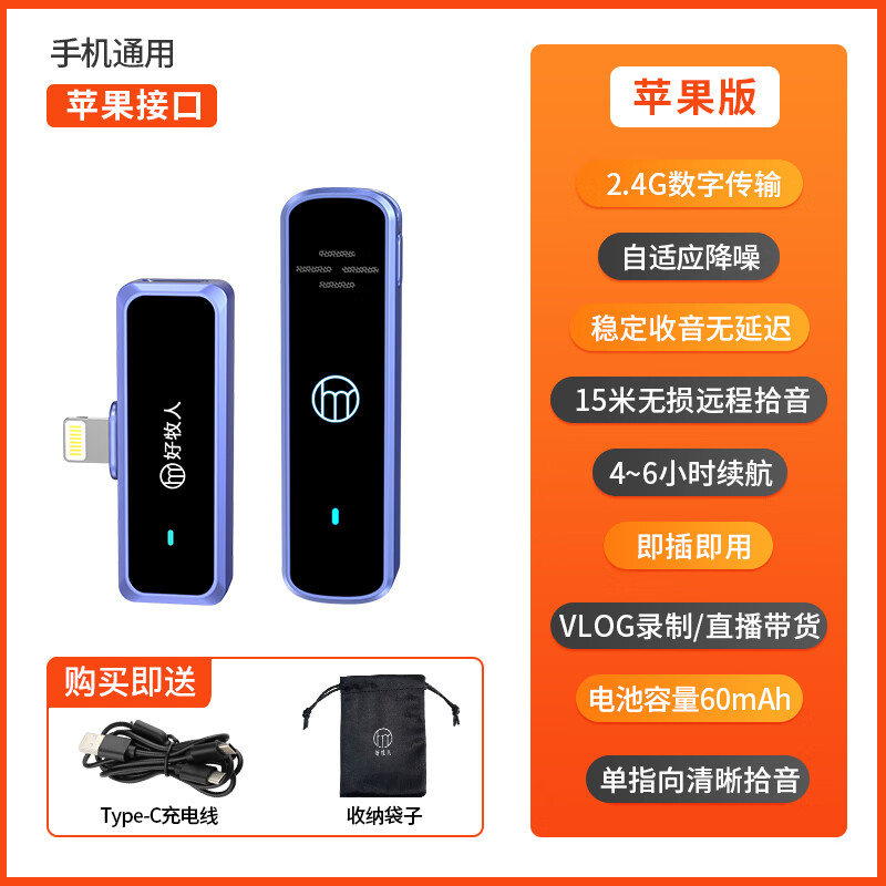 好牧人无线麦克风领夹收音麦小蜜蜂收音收声器专业采访降噪vlog短视频抖音主播录音配音直播设备手机话筒价格:182.00元!