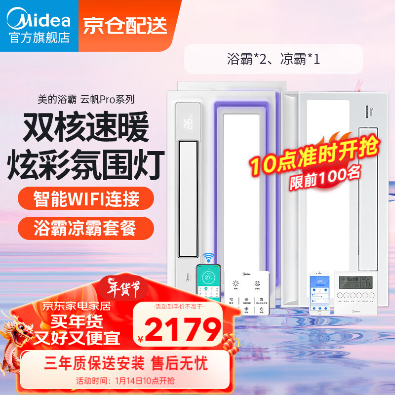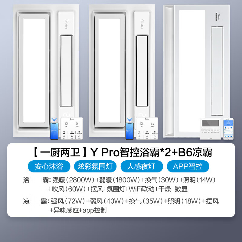 美的(Midea)风暖浴霸排气扇照明一体暖风机浴室集成吊顶智能双电机云帆pro价格:2276.00元!