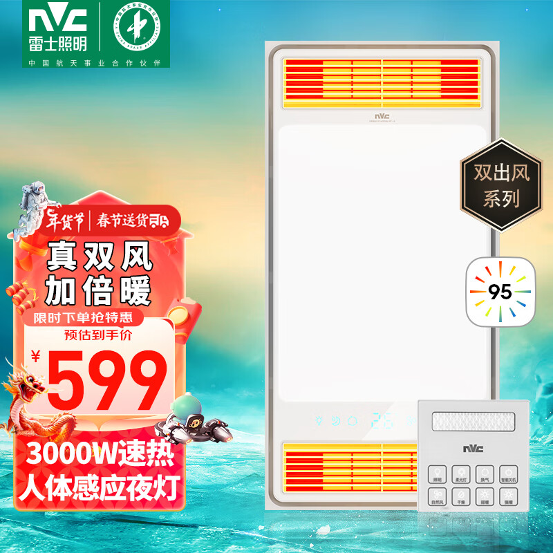 雷士(NVC)真双风口取暖/换气浴霸暖风照明排气一体机浴室电暖器集成吊顶价格:599.00元!