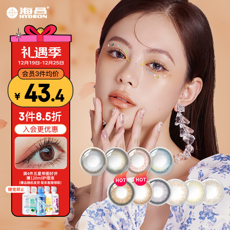 海昌 联名款 日抛美瞳 10片装 自然扩瞳 彩色隐形眼镜 新雨茶褐 0度价格:53.00元!