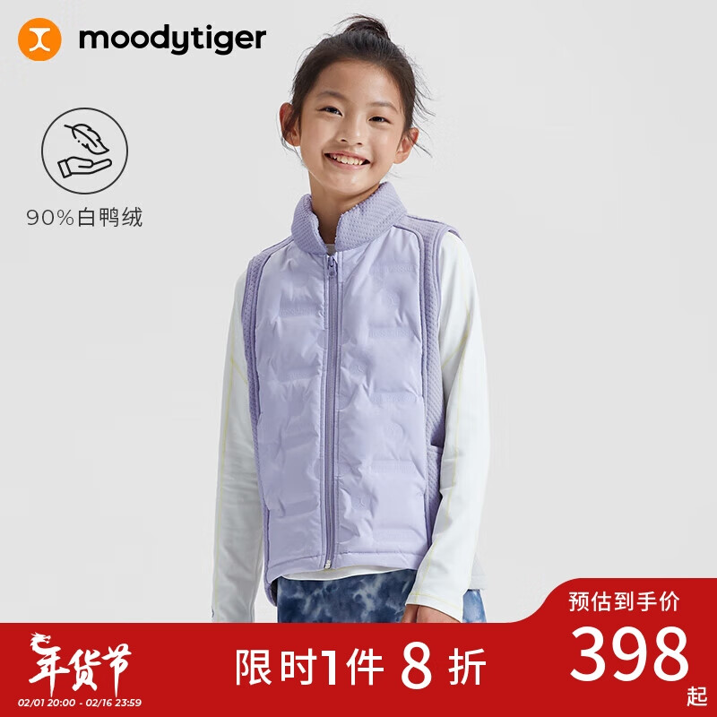 moodytiger儿童羽绒马甲23年秋冬季轻薄款男女童中性外穿羽绒背心价格:498.00元!