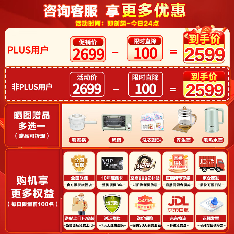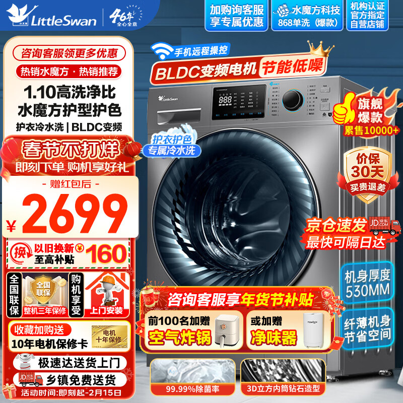 小天鹅(LittleSwan)水魔方滚筒洗衣机10公斤全自动家用变频 防缠绕 冷水洗护色护形TG100V868WMADY价格:2599.00元!