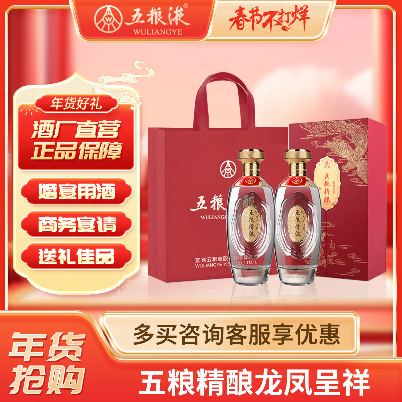 五粮液 年货送礼 五粮精酿龙凤呈祥52度500ml*2瓶 浓香型纯粮食龙年白酒价格:598.00元!