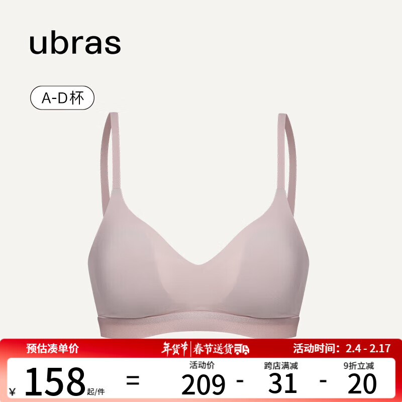 ubras极简V领光面兔耳杯背勾文胸女士内衣女大胸显小胸罩 兰花烟 L价格:209.00元!
