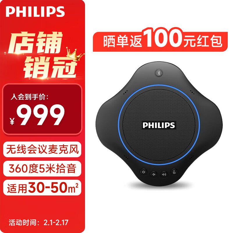 [hidden]【点击查看飞利浦飞利浦PHILIPS 视频会议全向麦克风 蓝牙无线USB 桌面扬声器 全向麦克风(6米收音距离-带扬声器) 活动分享】