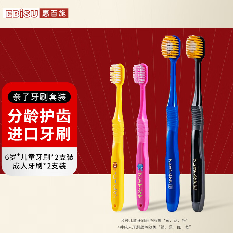 惠百施(EBISU)儿童牙刷6-12岁软毛分龄护齿日本进口2支装+48孔宽头成人软毛*2价格:156.00元!