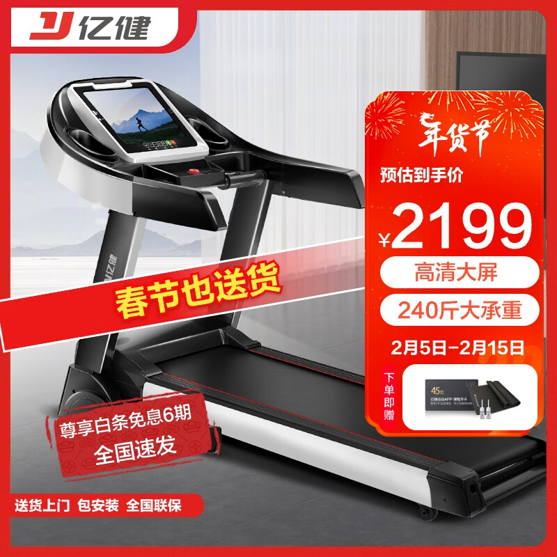 亿健(YIJIAN) 跑步机家用JD618可折叠智能10.1吋高清大屏健身器材价格:2299.00元!