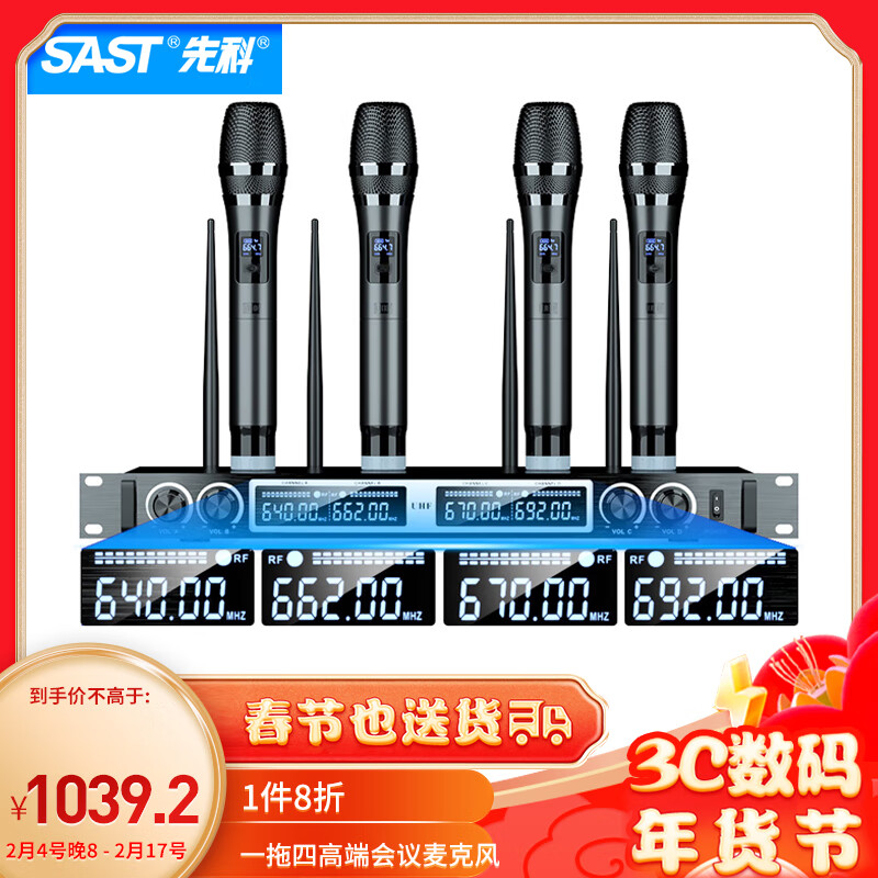 先科(SAST)OK-120 会议话筒无线麦克风一拖四无线话筒U段KTV鹅颈视频会议抗干扰UHF调频话筒100米 手持版价格:1299.00元!