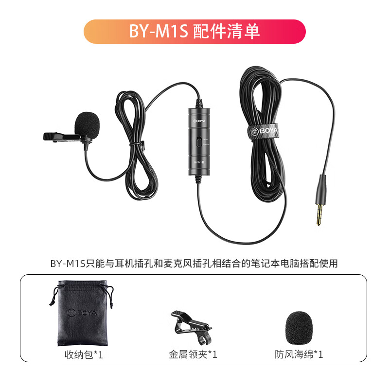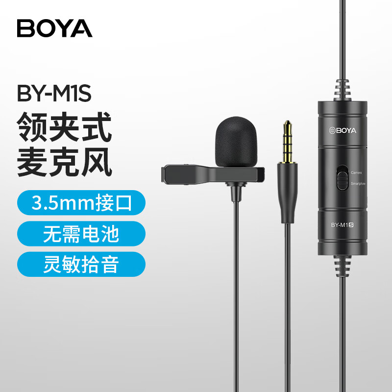 BOYA博雅 麦克风 BY-M1S手机直播短视频领收音夹麦克风 摄像机单反相机采访电脑K歌录音胸麦小蜜蜂话筒 6米价格:119.00元!
