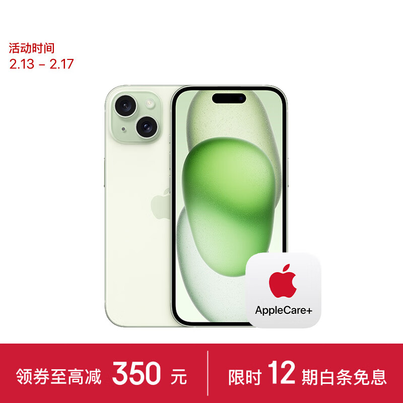Apple/苹果 【一年AC+套装版】 iPhone 15 (A3092) 256GB 绿色 支持移动联通电信5G 双卡双待手机价格:6848.00元!