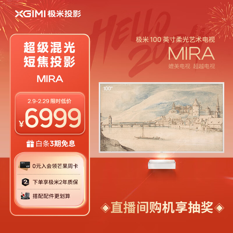 极米100英寸柔光艺术电视MIRA 混合激光超短焦投影( 哈曼卡顿音响 含100吋菲涅尔抗光幕布)包安装价格:6999.00元!