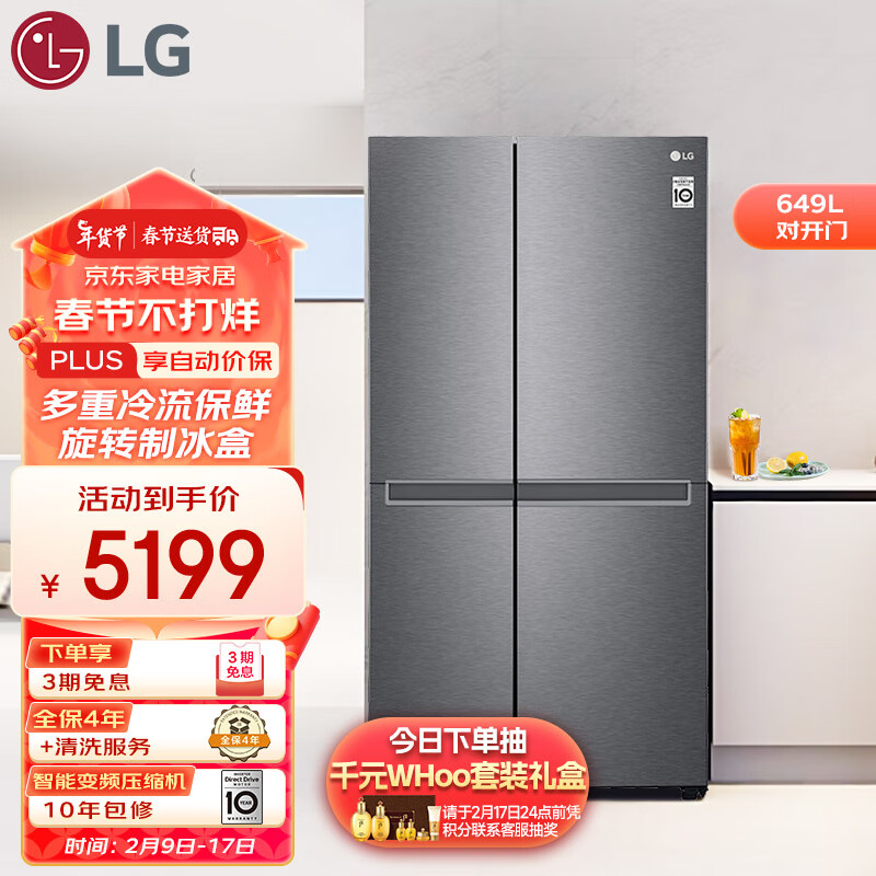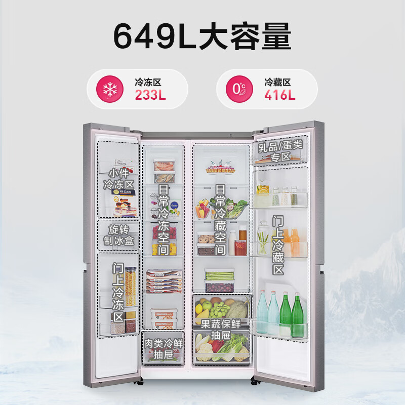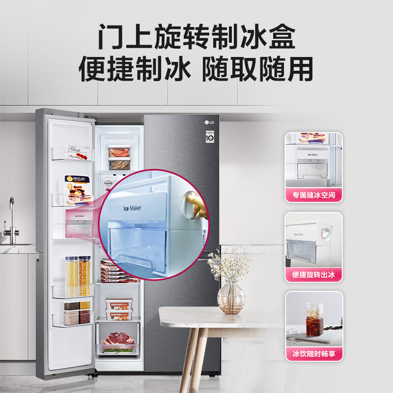 LG 御冰系列 649升超大容量对开门冰箱 双开门多重冷流 风冷无霜 钛灰银 S651DS12价格:4470.00元!