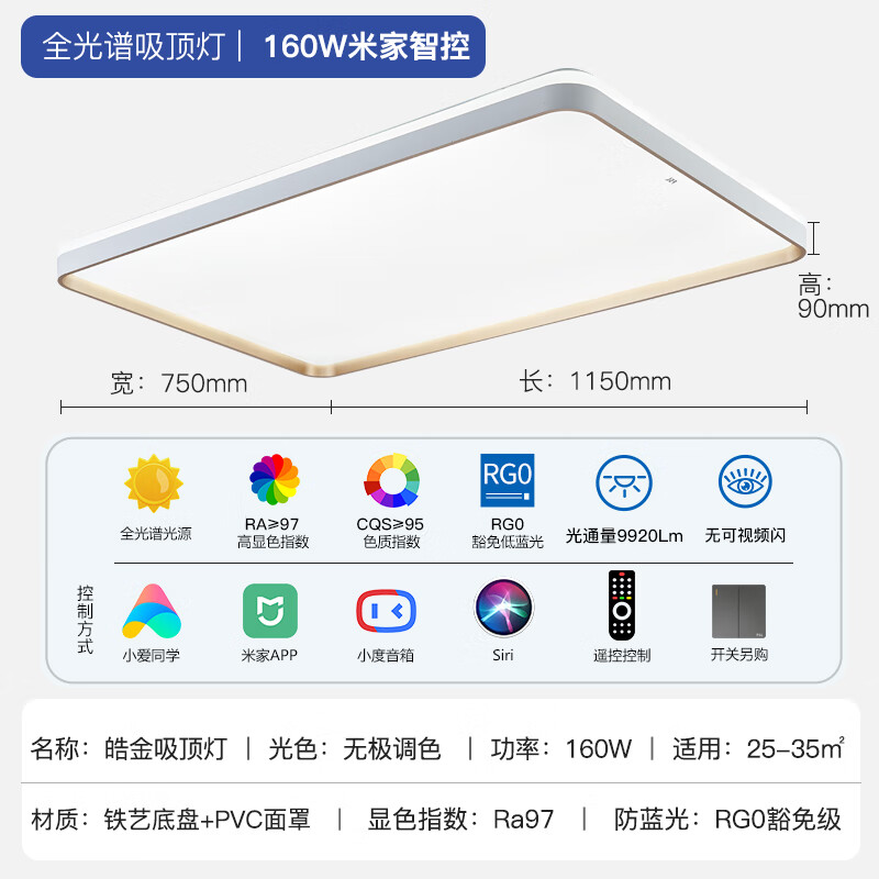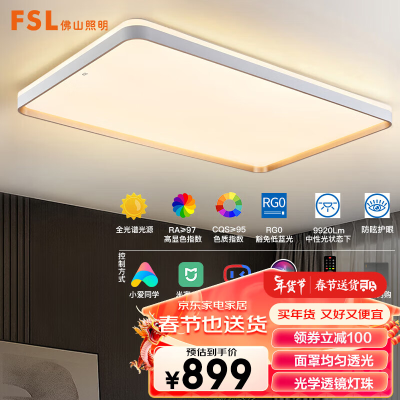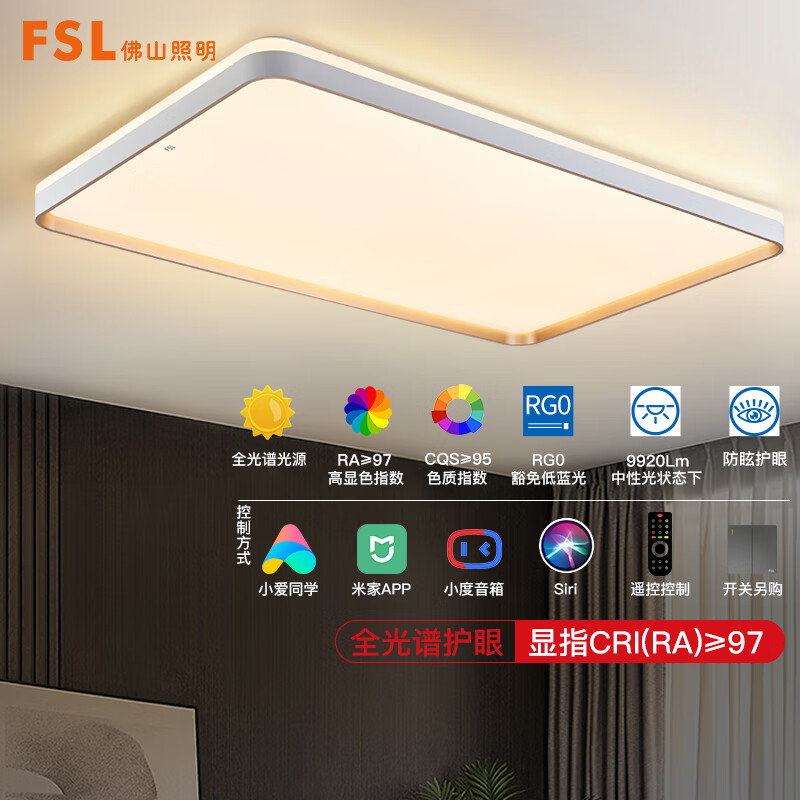 FSL佛山照明吸顶灯LED客厅灯大尺寸大户型高显97低蓝光米家皓金160W价格:999.00元!