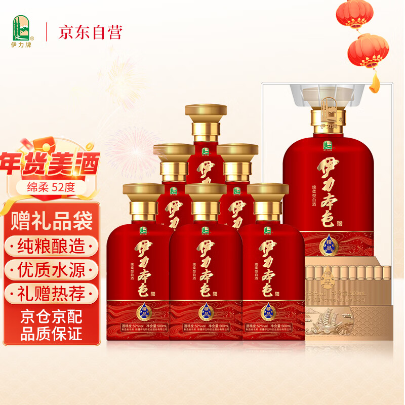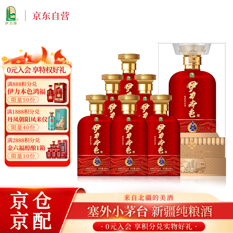 伊力特 新疆52度绵柔型年货白酒 伊力本色 精品500ml*6瓶整箱 含礼品袋价格:458.00元!