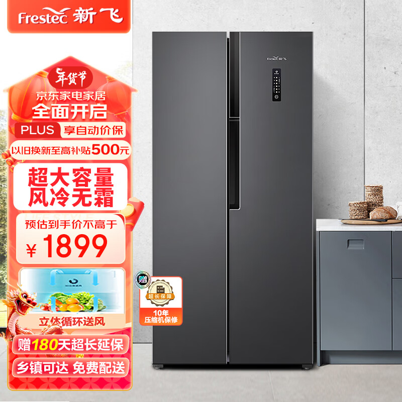 新飞(Frestec)525升风冷无霜对开门家用超薄冰箱超大容量双开门变频多路送风 90°悬停门BCD-525WK9HT价格:1899.00元!